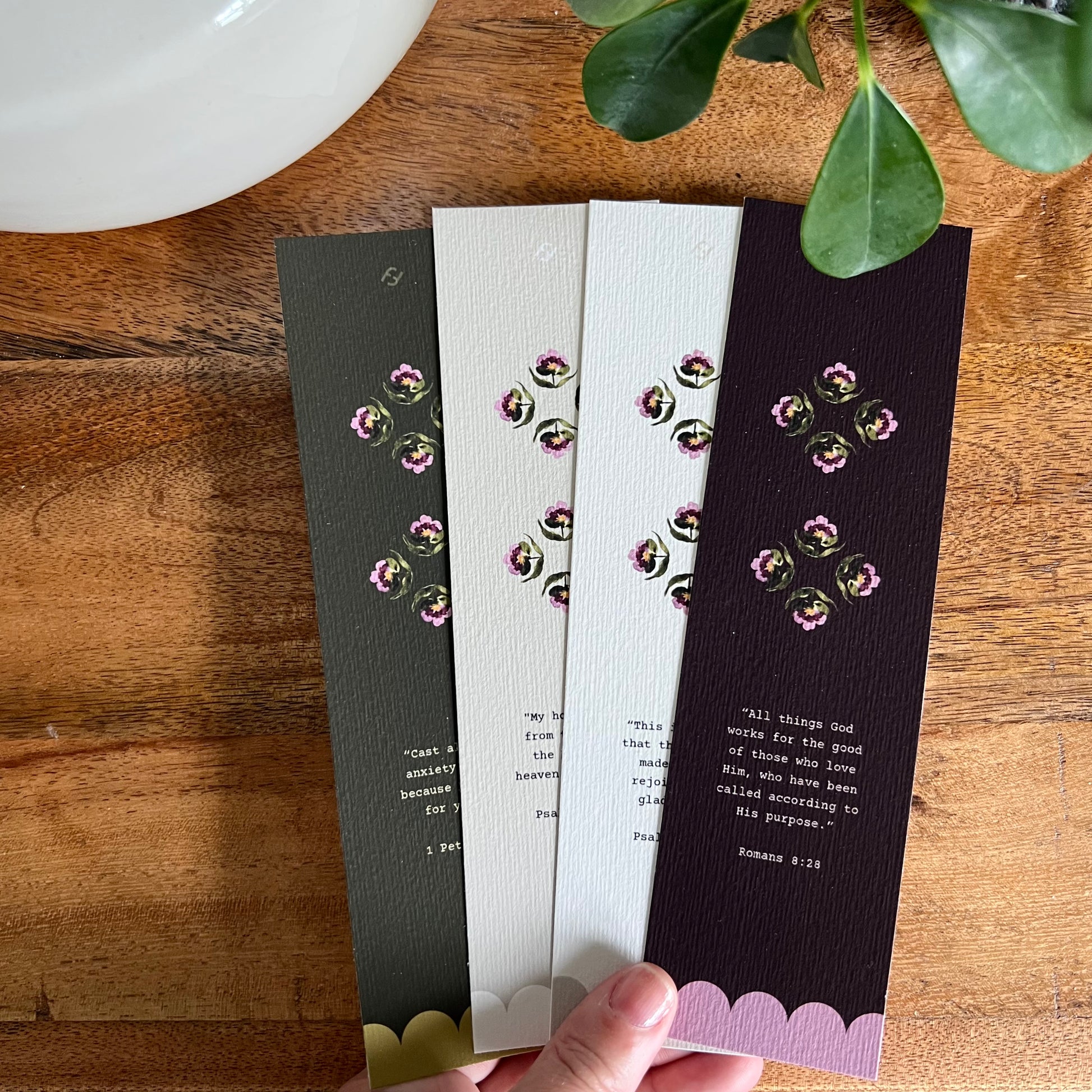 This collection of bookmarks is designed to encourage you in the lord as you read. Set of four bookmarks to keep all to yourself or to share. Printed on textured fine art paper and designed with my watercolor art. Printed and packaged to order.