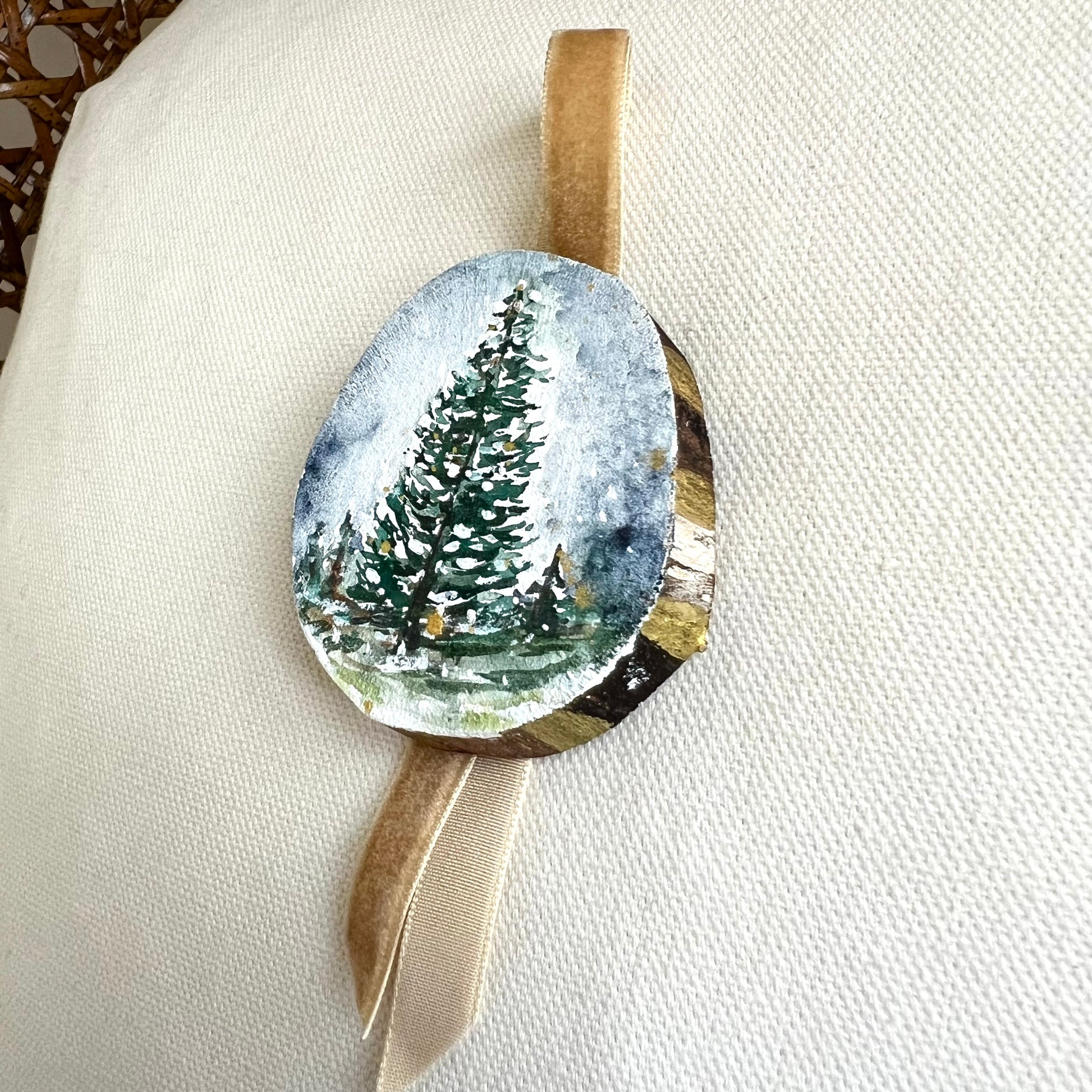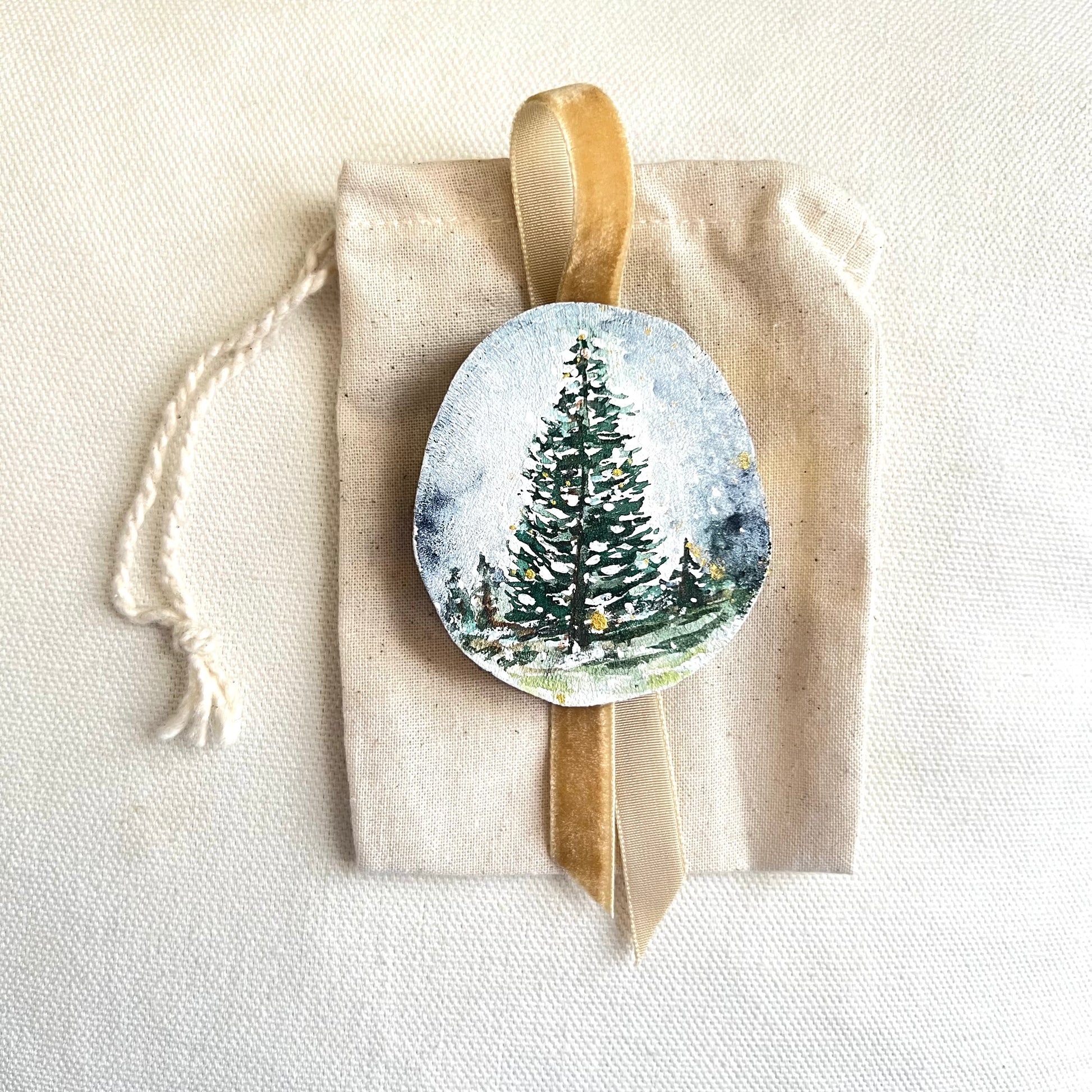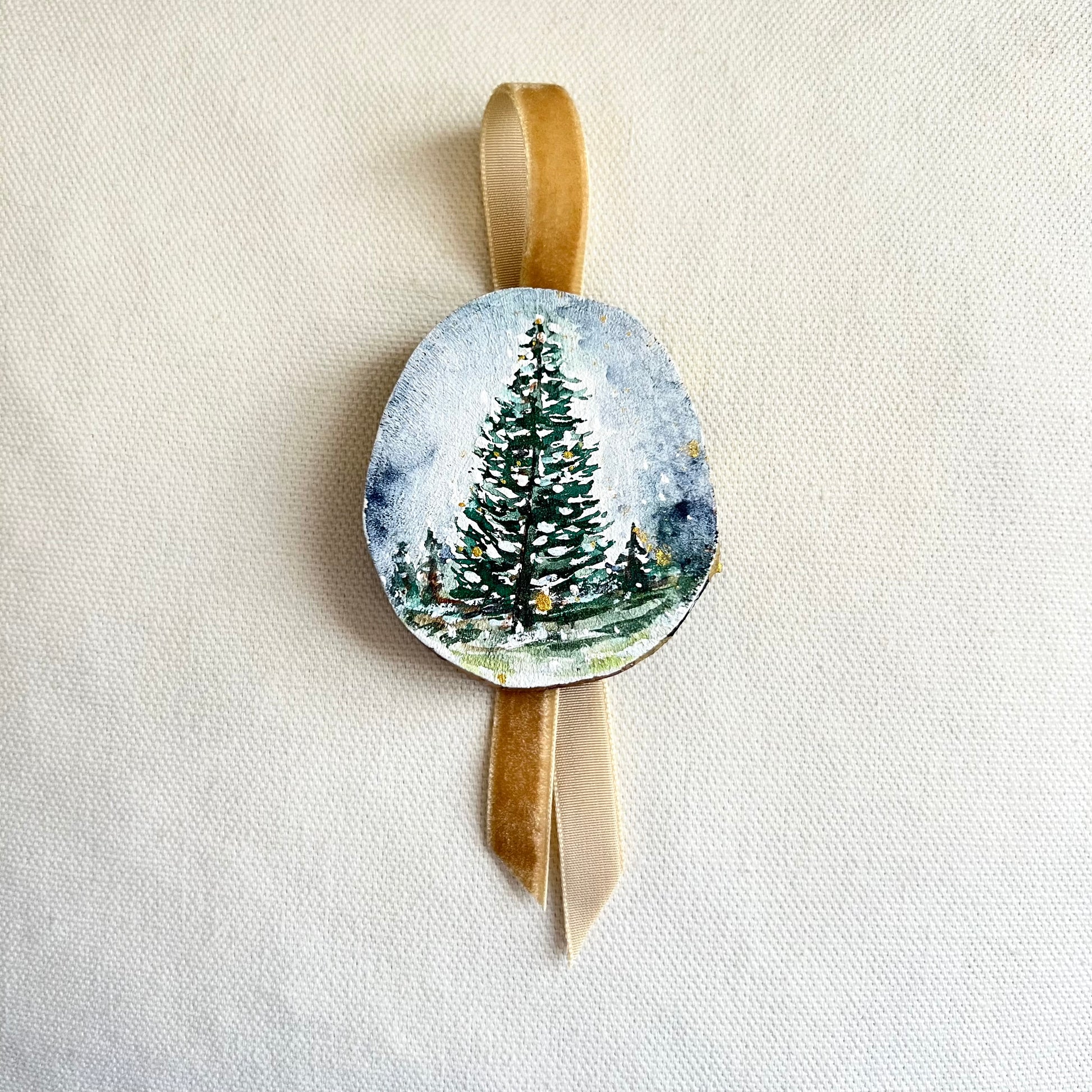 This beautiful ornament is one of a kind, hand painted on wood with a vintage style velvet ribbon. Signed and ready to hang! Includes a gift bag for easy gifting or storing for yourself.